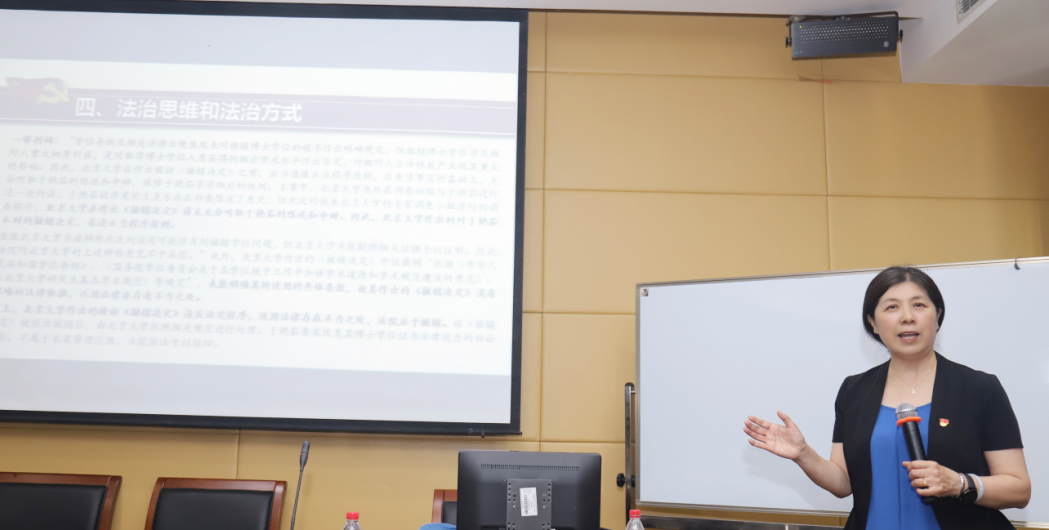 周杰普教授通过典型案例带领大家进一步领会法治思维和法治方式的内涵与基本要求,并列举了学校日常工作中涉及的相关法律法规,希望大家把认真学习贯彻习近平新时代中国特色社会主义思想主题教育作为重大政治任务,贯彻落实到办学治校各方面、全过程,更好转化为推动建设中国特色世界一流大学的不竭动力。