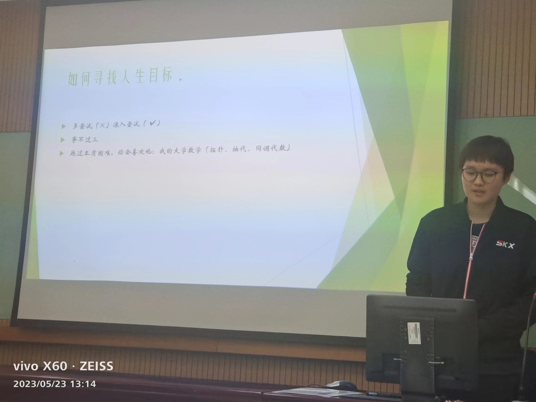 范宇欣同学从学习的人生目标,怎么具体学习,如何进行本科生科研,如何积极地参与科研等方面,结合自身的学习和研究经历做了分享。赵思丞同学重点讲述了本科学习过程中如何权衡就业和读博,重点分享了自己申请博士项目的过程。在讲述如何做科研时,赵思丞和范宇欣都强调了兴趣的重要性,要和老师多交流,多参加科研实践、讨论班和暑期学校,要做一些看起来“无意义”的事情。