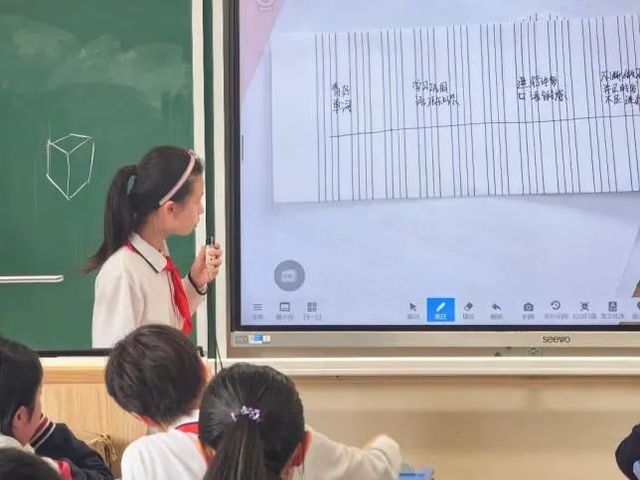 接下来,“小老师”们鼓励同学们主动分享自己的故事。其中一位同学详细列举了练习书法的时间线,其他几位同学也分享了自己在学习生活中所扮演的角色以及为扮演好这项角色所付出的努力。