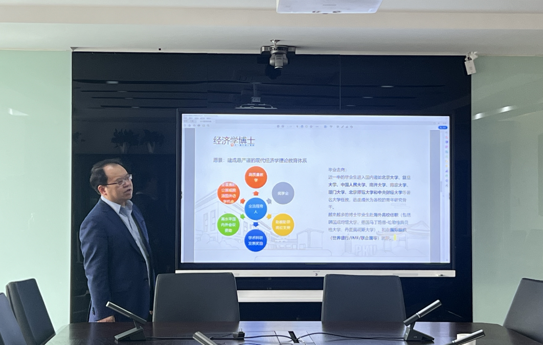 黄卓对国发院当前党的建设、教学项目、学生工作等进行了整体介绍,包括党建对学院人才培养等各项工作引领,打造“学术下午茶”“青年师说”“村长工作坊”等品牌平台,扎实开展扶贫、公益等项目,不断增强党建工作凝聚力;开展各个层级教学项目,加强校外经济学辅修项目的招生、培养等。学院旨在建成最严谨的现代经济学理论教育体系,培养以经济学为基础的博雅人才和“厚基础、宽口径、高素质”、富有创新精神、跨学科优势的新型人才。他特别提到,国发院的培养方案赋予学生较大的学术自由,鼓励学生多元发展,尽早找到自己的赛道。