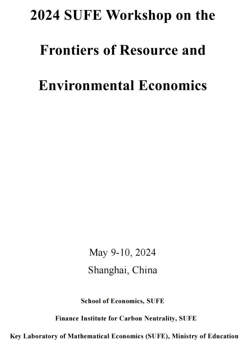 由上海财经大学经济学院、碳中和金融研究院、数理经济学教育部重点实验室联合主办的“2024上海资源与环境经济学前沿研讨会”定于5月9-10日(周四全天、周五上午)在上海财经大学高等研究院楼108会议室举行,诚邀学界同仁前来参会!