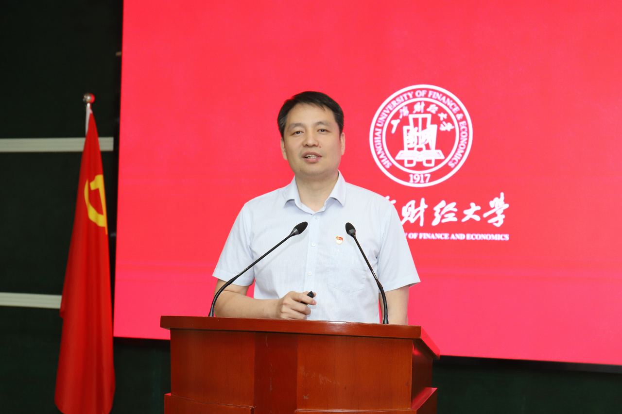为扎实推进党纪学习教育,推动学校高质量发展,6月3日,“走进系列”经济学院学科交流会暨党纪学习教育联合党课在行政楼一楼报告厅召开。上海财经大学校长、党委副书记刘元春,发展规划处处长张锦华,经济学院院长周亚虹、党委书记林立国,商学院党委副书记王体,经济学院党政领导班子、各系负责人和党员、教师代表,以及机关党委第11支部全体党员出席会议。