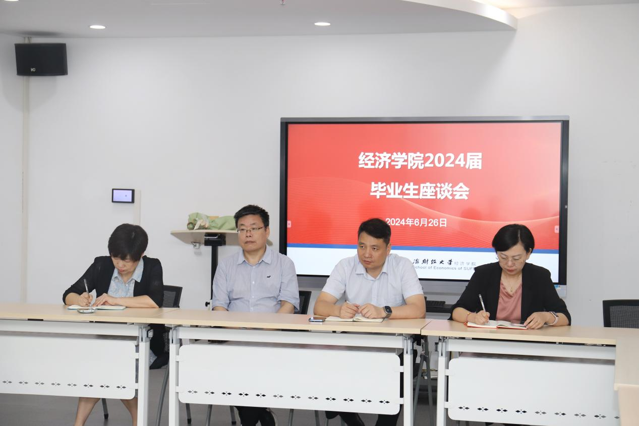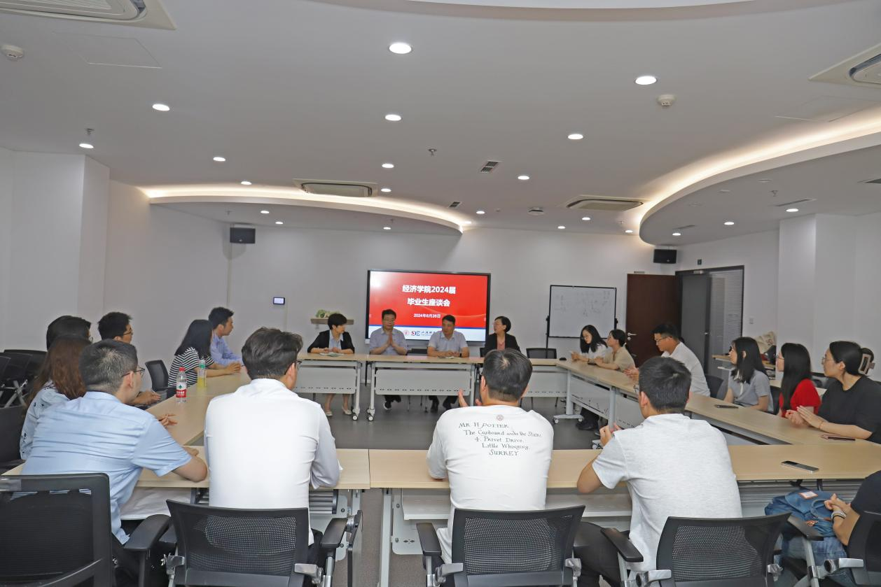 在毕业生们参加完学校毕业典礼即将离校、踏上新征程之际,经济学院以师生座谈会的形式给同学们开展离校前的最后一课。2024年6月26日下午2点,学院2024届本硕博30名毕业生代表在高等研究院楼105会议室齐聚一堂,为学院的发展建言献策的同时,聆听宝贵的最后一课。学院党委书记林立国、副书记金晓茜,副院长燕红忠、陈媛媛,导师代表杨哲以及学工、教学、党务团队等参会交流。座谈会由金晓茜老师主持。