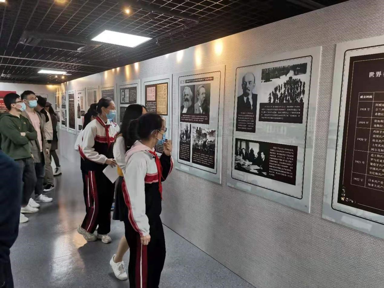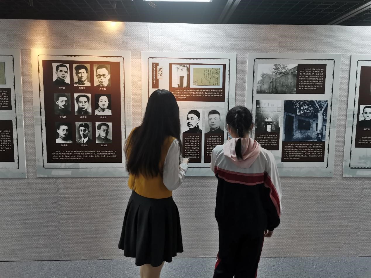 下午2:15,三门中学师生到达武川路校门口,在经济学院志愿者的引导下,前往校史馆参观《星火初燃—共产党早期组织与中国共产党的创建文物史料图片展》。经济学院博士生支部党员、入党积极分子、入党发展对象等志愿者们当起了讲解员,每位经院学子对接一位中学生,为他们讲述建党初期的峥嵘岁月,博士生学长的讲解旁征博引又亦庄亦谐,佐以丰厚的史料图片,让小朋友们动容神往。
