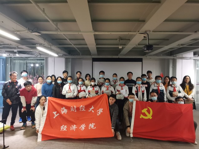 2020年11月13日下午,由上海财经大学经济学院与上海财经大学附属中学三门中学合办的主题党日活动如约而至。经济学院党委书记王昉老师、三门中学政教处老师以及经济学院专职组织员、博士生支部党员、分团委学生志愿者、三门中学初二年级入团积极分子学生代表参与本次活动。