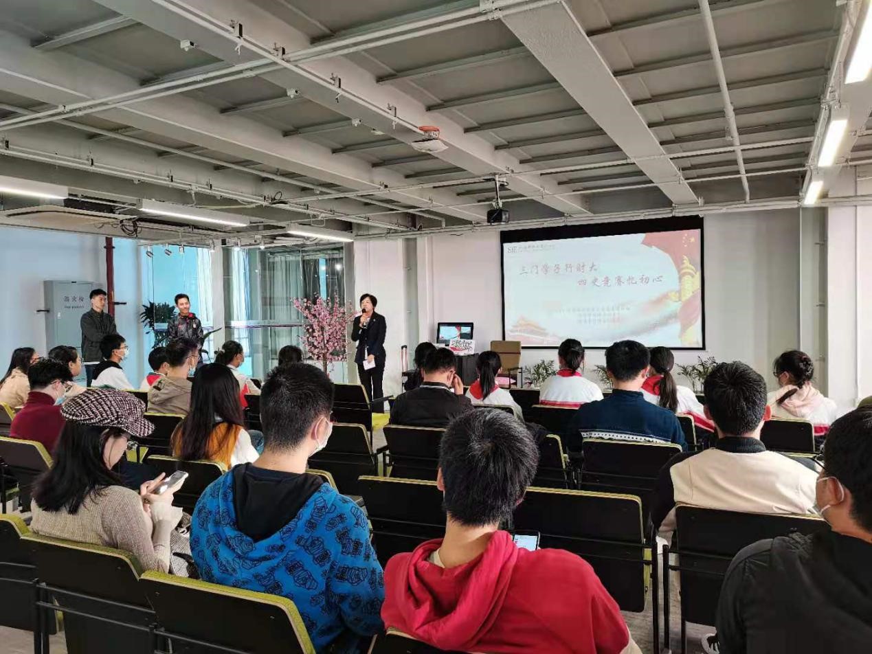 随后三门中学师生和博士生党员、志愿者们动身前往英贤图书馆活力岛参加四史教育活动,会场的布置简洁大方而又充满四史元素。活动伊始,王昉书记代表学院致辞,她对三门中学师生的到来表示欢迎,也谈起经济学院与三门中学的渊源,希望未来可以更好地利用双方资源,尤其是四史学习资源,推进同学们从历史过程中汲取力量,不忘初心,不忘来时路。