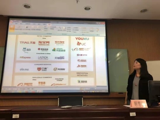 2019年4月27日下午两点,经济学院412报告厅顺利举办了以“互联网行业那些事”为主题的职业生涯辅导讲座。本次讲座由经济学院张杭辉副教授主持,邀请到了阿里巴巴集团法务运营顾慧敏博士,旨在为大家讲解阿里巴巴集团架构和运营情况。