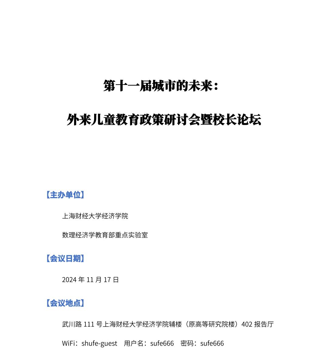 会议预告|第⼗⼀届城市的未来:外来⼉童教育政策研讨会暨校⻓论坛