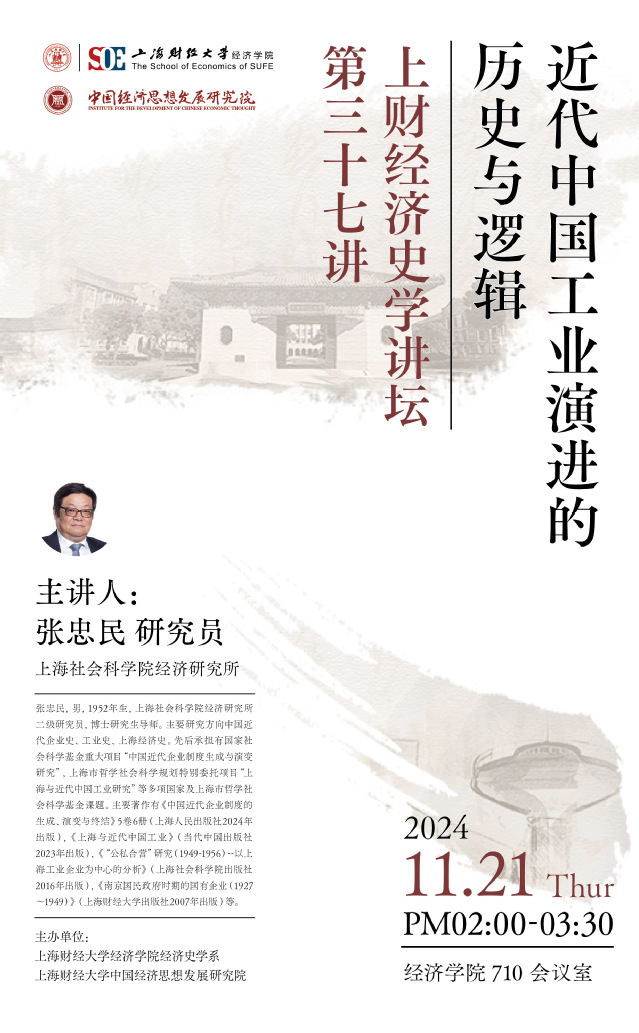 【上财经济史学讲坛第三十七讲】近代中国工业演进的历史与逻辑