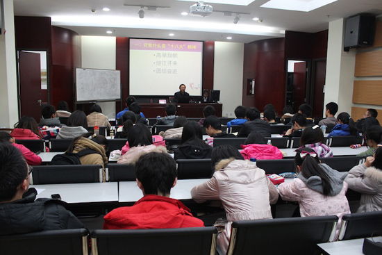 2012年12月12日晚,经济学院团学联组织部邀请了上海市委党校王志平教授在经院607作了题为“从‘十八大’看中国未来发展”的报告。经院全体本科生党员、预备党员,部分入党积极分子,分团委所有干部听取了此次报告。