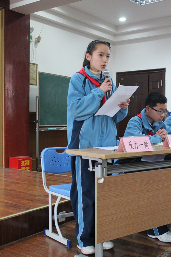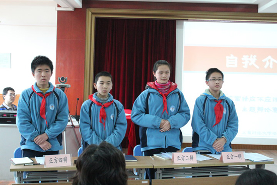 观,同时也不失激励作用。接着,双方辩手展开激烈精彩的辩驳,其中不乏中学生特有的机智幽默的问答,整个过程高潮迭起,台下师生喝彩不断。发言结束后,由