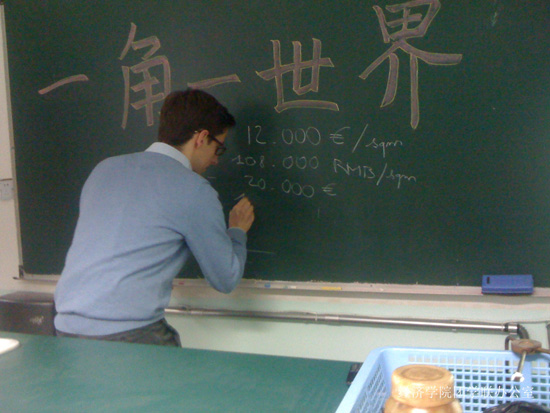 些重要节日是什么。查尔斯非常详细耐心的讲解了各个问题,还告诉学生欧元和人民币的兑换比率等等。学生提的问题五花八门,充分反映了学生们的好奇心和求知