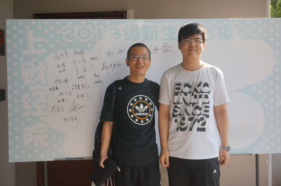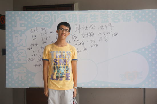 迎新当天,新生陆续前往经济学院大厅报道。团学联成员在学院门口热情迎接,并协助新生领取各项资料,解答疑惑。临走时,每位新生都在事先特意准备的新生留