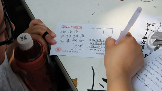 在活动现场,外联部准备了印有重阳节特别图案及装饰的明信片、信纸和信封,由同学们现场写下祝愿的话语,免费代寄回家中的老人手中。现场反响热烈,有许许