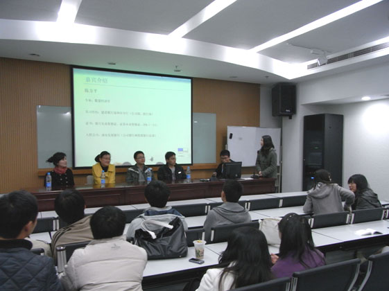 该场交流会邀请到入职于中国建设银行股份有限公司的侯勇志学长,入职于浦东发展银行的陈方平学长,入职于上海国际信托有限公司的张超学长,入职于Morgan Stanley的薛冰学姐和入职于中国建设银行上海分行的曹楠楠学姐以及学院辅导员孙传通老师。
