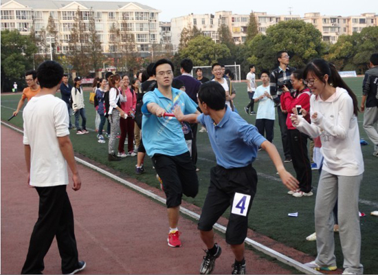 在男女4*100、4*400等团体项目上,我院健儿也奋力拼搏。