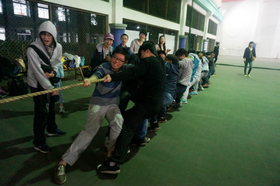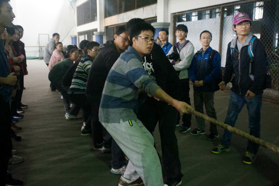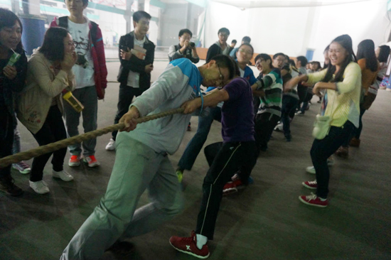 2013年11月6日晚,经济学院团学联在风雨操场如期举办了13级新生班级挑战赛系列活动之拔河比赛。首先根据抽签结果两两对决,获胜一方进入下一轮比