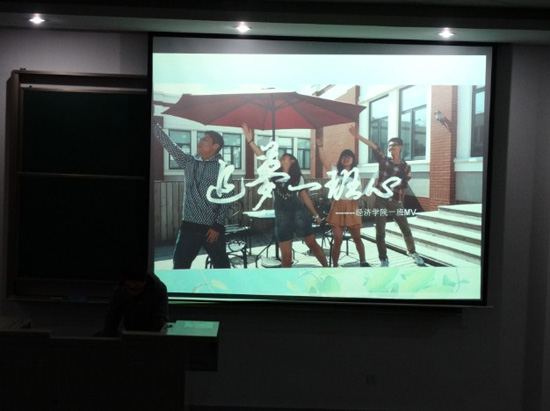 MV《你是我的树精班》,在负责人幽默的解说之后,MV便开始了。整个MV充满了青春与活力,让人感受到了数量经济班的活跃氛围。紧接着的是二班的MV