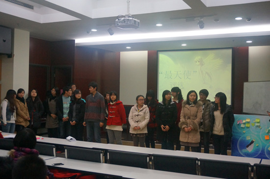 作,给予了干事们祝福,也表达了对下学期工作的寄望;之后,上一次干事交流大会揭开序幕的天使行动在此次大会上进行了闭幕仪式,并进行了“最天使”的评