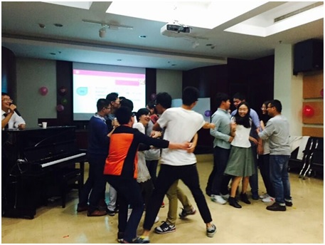 “爱的抱抱”是大家玩得最开心的一个游戏,现场气氛非常欢乐热烈,甚至超过了主持人和策划同学的预期。