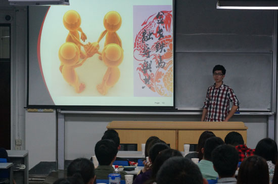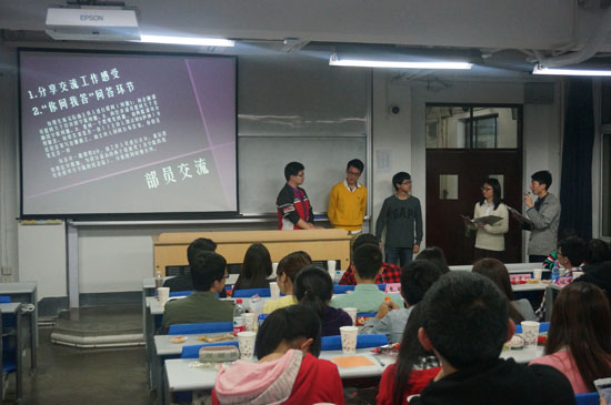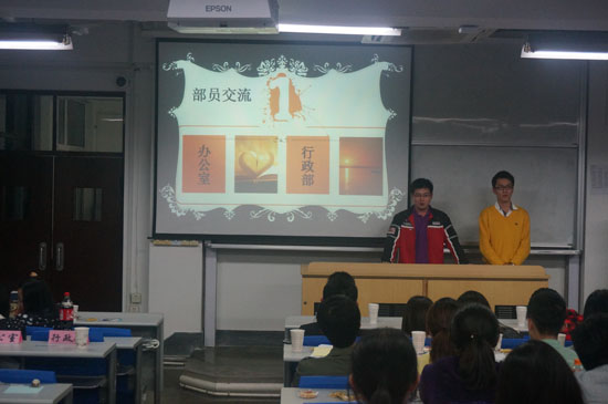 两院就各自举办和参加的活动进行了比较,交流了各自的经验看法。部员交流的同时还穿插了互动答题环节,考察两院的互相了解程度。同时,在大会开始之时,现