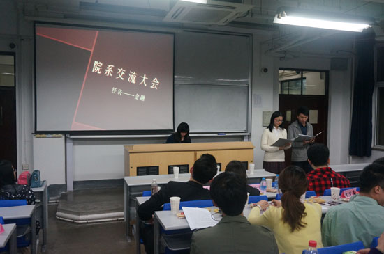 4月29日晚,由经济学院团学联携手金融学院团学联举办的院系交流大会于二教301正式举办。两学院的团学联成员就近一年的工作内容展开了交流与互动。交流现场气氛融洽,大会成功加深了金融学院与我院团学联的深厚情谊,并憧憬了更加美好的合作未来。