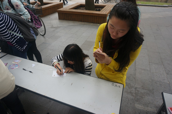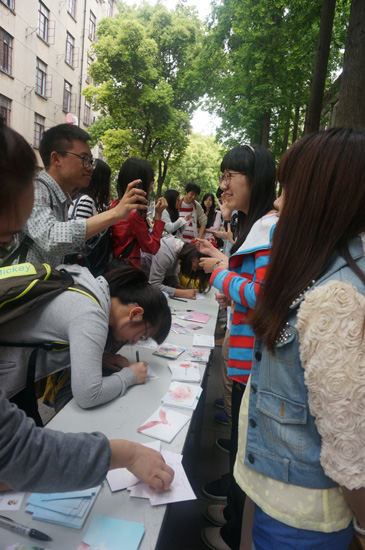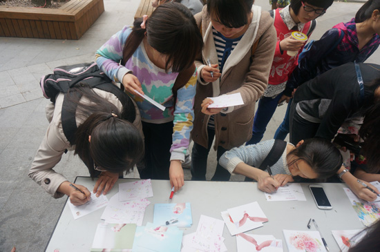 5月9日中午,经济学院团学联外联部组织举办的母亲节特别活动在绿叶步行街举行。本次活动在母亲节前夕举办,组织同学们用明信片的形式表达对母亲的爱和感恩,并由外联部进行免费代寄,将爱进行传递。前三十名参加活动的同学还可以获得一支康乃馨。 活动过程中,同学们纷纷驻足参加本次活动,场面十分火爆。本次活动提倡发扬爱与感恩这一可贵品质,同学们的积极参与也体现了对母亲们的深切关心,相信每一位收到明信片的母亲都能感到幸福和欣慰。