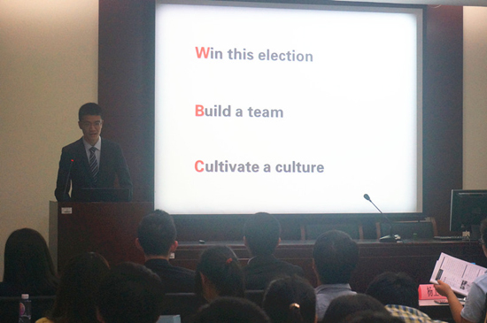 主席团换届选举中,八位候选人通过五分钟的个人陈述,阐述自己的个人成长和对团学联未来的改革设想,思路清晰;个人陈述之后是答辩环节,候选人也对未来可能出现的问题进行了回答。最终由老师、学生代表根据候选人表现进行现场投票。