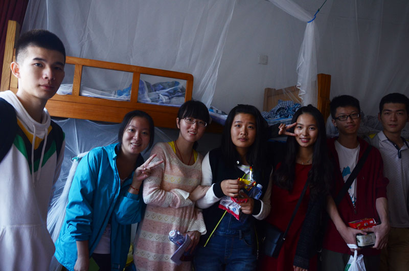 在结束了大约半个小时的男寝探秘之旅后,一行人马又一路欢歌来到了女生寝室的楼下。虽然这里的宿舍管理条例颇为苛刻,但经过与管理人员有效的协商,14位