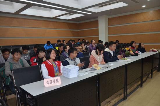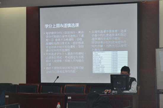 首先,负责人带领同学们观看PPT,从选课流程的详细指导,到新增课程亮点的完全剖析;从近50门课程的权威解读,到100多位老师的准确评估——活动通