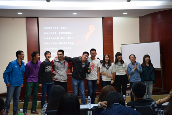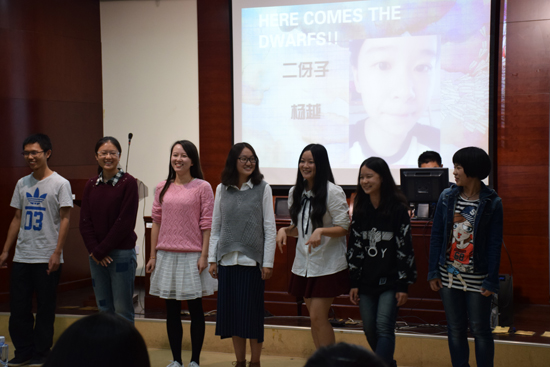 首先是各部门成员进行自我介绍。先上台介绍的四个部门可以说是煞费苦心,有通过改编白雪公主与七个小矮人进行自我介绍,有通过演历史剧皇上纳妃子进行角逐,更有同学大胆创新,编出快板三字经。丰富多样、大胆新颖的方法让台下其他部门同学掌声笑声不断,大家相互间的距离也因欢笑而减少。