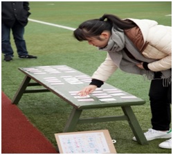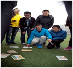 在上午活动中最为精彩是卡牌游戏,这个游戏要求在最短时间内按顺序翻出所有卡牌,在活动进行时各队队员分别用行动体现出属于自己的团队风采,尤为可贵的是随着游戏的进行,同学对团队意识理解越发深刻,在这一轮比赛中胜利的“拉格朗日”队在总结经验时说明,他们之所以能获胜有两大大法宝。首先是各队员团队意识强烈,在比赛进行时服从大多数人决定,按照各自任务进行翻牌,为下一位队员创造更好的机会,另外一点则是通过本队口号“欲取极值,拉格朗日”般的机智意识——以牺牲前两张牌为代价,换取对整个比赛的大局思考。