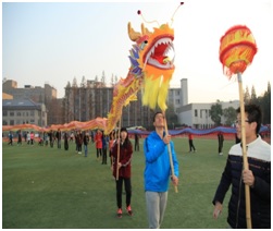 而整个素拓活动的重头戏则是在下午举行的舞龙活动,全院同学以班级为单位,通过任务的分配,班级同学分别进行龙头、龙身、龙尾、龙珠的制造,通过一个半小时的努力,寄托着各班“中国梦”的“中国龙”终于在操场腾飞,在中国龙腾飞那一刻,歌曲【男儿当自强】也开始在校园想起,在激励人心的歌声中,三条巨龙在校园各地徘徊起舞。歌声中有一句话让大家也对舞龙有了更深的认识——用我百点热,要出千分光。这是一种何等的担当气概,而在“经世济国,圆梦中华”的过程中需要的也是一种对历史的担当、对社会的使命感,在这种豪情壮志中,素拓活动圆满结束。