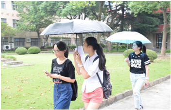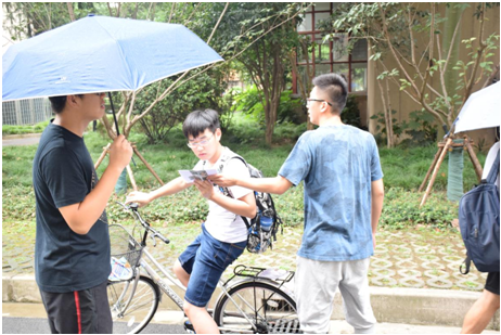 春晖湖畔的柳树叶儿伴着风翩翩起舞,雨滴飘落在湖面上,泛起一阵阵涟漪,把莲花瓣一晃一晃地推到岸边……他们不禁驻足,拍照留念,然后赶忙继续向目的地跑去……全家、大学生活动中心、医疗健康服务中心的门前都留下了他们足迹,当然,也有比较难以寻找之处,比如经济学院楼后的那一小片场地可是难住了许多人……好在,财大的学长学姐们很乐意提供帮助,一声『请问』换来清晰的指引……