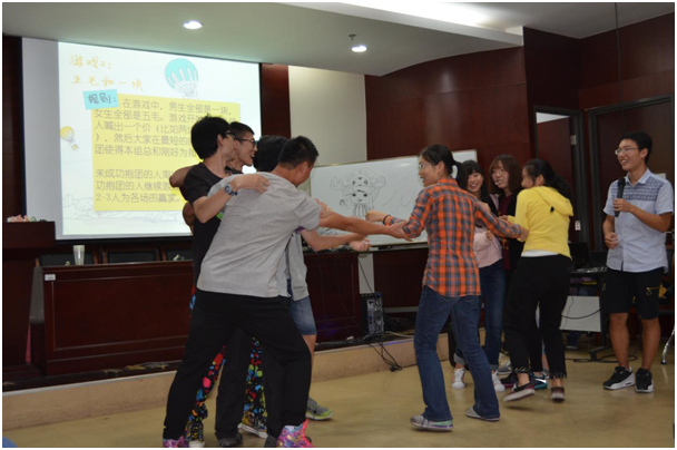 首先,辅导员上台讲话,表达了对学生的期望以及祝愿。各部门部长也通过短片的形式表达了对学弟学妹们的热烈欢迎。接着,学姐学长的合唱《蓝莲花》《江南》宛如天籁,动听醉人。小品《招亲大会》凭借过人的创意以及演员们夸张而细致的表演引得全场爆笑连连。而游戏小达人隆重推出的游戏更是频频引爆现场。“杯尖上的益达”、“五毛和一块”通过男女互相合作,进一步沟通交流,增进了彼此的感情。不仅参与游戏者乐在其中,观众也笑声不绝。