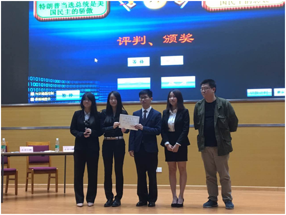 辩论赛辩题是“特朗普当选总统是美国民主的骄傲还是悲哀”。正方经济学院开宗明义,认为评判是骄傲还是悲哀的标准应当是:特朗普当选是否能够通过民主程序促进多方民众的诉求得到表达。