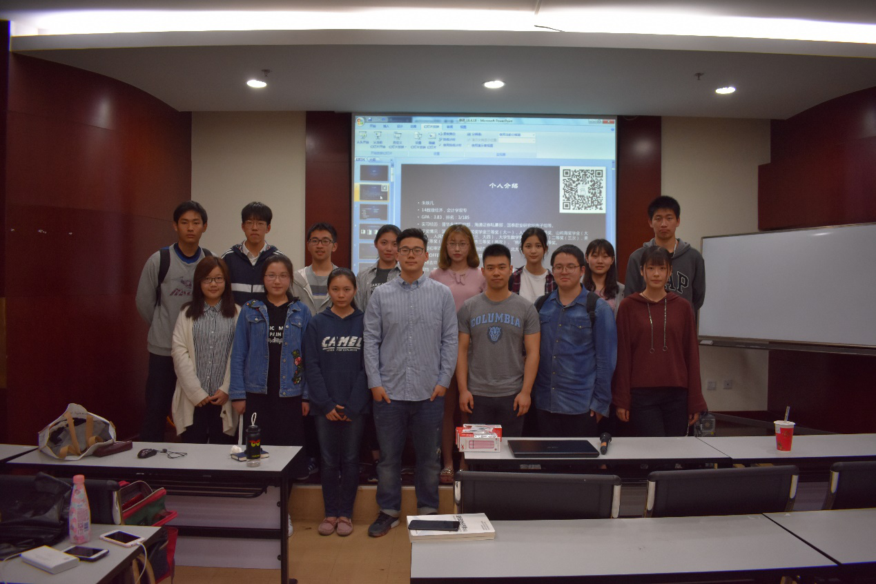 随后,马文达学长与我们分享自己准备出国深造的经验。学长担任经济学院助理研究至今,并在哥伦比亚大学有过一年的交流经验,拿到了哥大经济教授和财大经济教授的推荐信。还有中国太平资管和日本和流咨询的实习经历。学长还为大家分析了留学生国内外就业环境,分享了取得推荐信的方法,并再一次强调绩点的重要性。在分享的最后,学长为大家展示了他留学阶段有趣的生活照。
