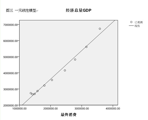 因此笔者对经济总量和最终消费进行简单的一元线性回归。