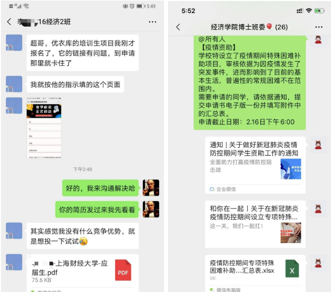 确保关心关怀全方位、不缺位。面对同学们因疫情产生的焦虑、恐慌、彷徨等情绪。辅导员第一时间对梳理出来的困难分类整理,列出帮助清单,区分情况、精准施策。引导因疫情带来心理压力的学生,获取学校心理支持热线的专业网络咨询服务;协助毕业生通过“一对一”职涯领航线上咨询服务、“校企空中双选会”以及教育部启动的“24365全国网络联合招聘”等渠道完善简历、拓宽求职渠道,寻找职场方向;帮助因疫情引起的家庭经济困难学生申请学校的特殊帮困补助。同时,辅导员也积极组织开展网络班会、党课、团日等活动,介绍防疫科学知识,宣传先进典型,网聚青春能量,鼓励大家踊跃参与学校举办的“阅读战‘疫’”“学习战‘疫’”“运动战‘疫’”和“美育战‘疫’”等活动。这些富有温度的工作举措真正暖人心,确保让学生感受到辅导员和自己并肩战“疫”,始终相伴。