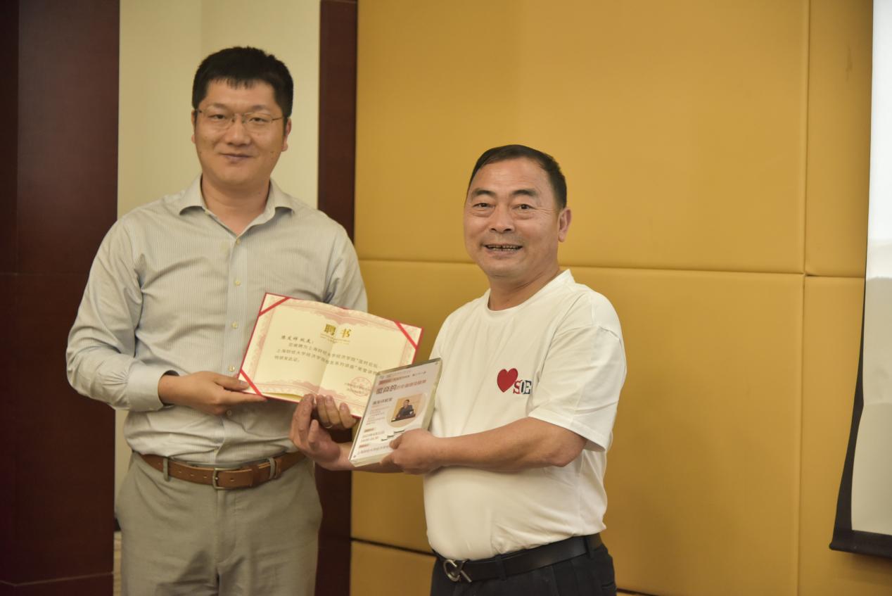 黄振兴教授还为陈发祥校友颁发了“匡时论坛——上财经济学院校友会系列讲座”荣誉讲师聘书以及讲座纪念立牌等。