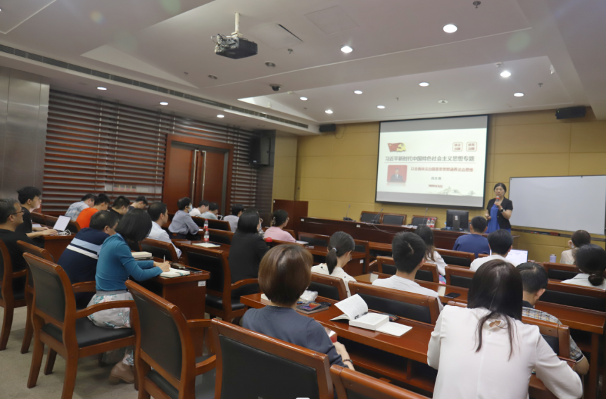 为深入开展学习贯彻习近平新时代中国特色社会主义思想主题教育,5月15日下午,校党委常委、统战部部长周杰普教授围绕“习近平新时代中国特色社会主义思想专题——以全面依法治国重要思想涵养法治思维”主题向经济学院、高等研究院师生党员讲授专题党课。