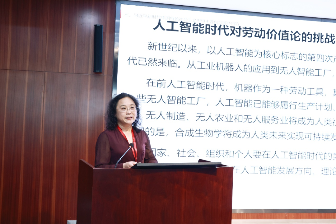 学会副会长、武汉大学马克思主义学院李楠教授以“人工智能时代劳动价值论面临的挑战与应对”为题做主题发言。她指出,人工智能时代马克思劳动价值论面临着挑战,主要表现为人工智能时代对价值创造、价值实现的挑战以及人工智能机器对人类劳动的替代效应。在价值创造方面,人工智能时代的挑战表现为人工智能对劳动者的剥削更为隐蔽和复杂以及人工智能对劳动者的排挤;在价值实现方面,人工智能时代的挑战表现为“无人生产”导致的“无人消费”风险、大数据和算法等的应用对平等交换原则的挑战以及“零传播成本”对数字化商品价值实现的威胁。此外,人工智能机器还可能通过取代人类常规性、重复性的简单体力劳动,来进一步替代多环节耦合的复杂体力劳动与极具逻辑性、创造性的脑力劳动,从而展现出对人类劳动的显著替代效应。因此要在坚持马克思劳动价值论的基础上,深入分析人工智能可能带来的机遇与挑战,加强风险管理,建立和实施规范体系和制度条件,促进人工智能开发和应用的良性循环,有效激发全社会劳动者的积极性、主动性和创造性,最终实现人的自由全面发展。
