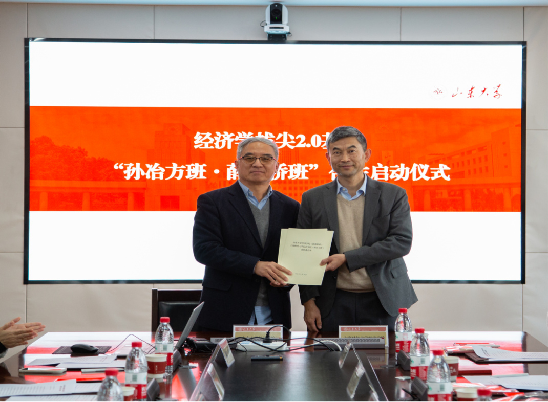 “薛暮桥班·孙冶方班”合作共建启动仪式上,周亚虹与林平共同签署合作备忘录,合作建设“薛暮桥班·孙冶方班”拔尖2.0基地班。山东大学经济学院副院长孙淑琴介绍了双方前期合作交流成果。围绕主题教育中“如何推动‘在造就拔尖创新人才上先行先试’要求的落实落地”,两校结合学科实际,充分发挥在拔尖人才培养中的优势,延续薛暮桥与孙冶方两位经济学泰斗的治学精神,在探索跨学校联合推进拔尖创新人才培养模式方面进行了深入的交流和研讨,在合作举办暑期夏令营、学生学术论坛、共建名师课程团队、共享海外资源平台等方面达成了共识。