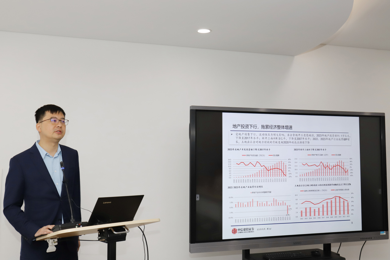 竺劲主旨演讲主题为《房地产市场Q1回顾与新发展模式展望》,他以中国房地产市场为研究对象,详细分析了当前中国房地产现状和未来走向。在经历了三轮房地产周期后,房地产供求关系发生了重大变化。房地产销售在2021年达到顶峰后由正转负,过去货币化棚改带来的正面影响正逐渐消退。受到地产销售下行、房地产企业流动性压力增大的影响,房企拿地开工意愿和投资需求减弱,导致政府土地出让金收入对财政贡献程度由2020年高点持续下降。政策层面,政府持续出台政策加力呵护供需两端。供给方面,政府不断推进城市房地产融资协调机制,加强对房企资金支持力度。需求方面,各大城市逐步放松限购限贷等调控政策。今年一季度,房地产销售额下行幅度较大,新房需求流向二手房市场。由于二手房价格相对灵活以及不存在交付问题,未来交易份额预期值将进一步提升。房价相较2021年年中高点回撤超20%,整体房价水平仍未触底。进入2024年以来,保交楼和三大重点工程推动房地产行业向新模式转型,从短期和长期看对行业有积极作用。中国房地产旧发展模式存在重需求管理而轻供给调节、重短期调控而轻建立长效机制等诸多弊病。旧发展模式在货币金融、土地、税收、住房保障等诸多不足。未来,建议房地产新发展模式的政策规划应充分考虑上述因素,如积极防范风险,稳定信贷制度;供地更多向保障性住房倾斜,价格上商品房定价更为灵活,形成多渠道土地供应;积极稳妥推进房产税立法,打击投机行为;发展保障房,完善预售制度,畅通二手房交易,逐步向租售同权过度。