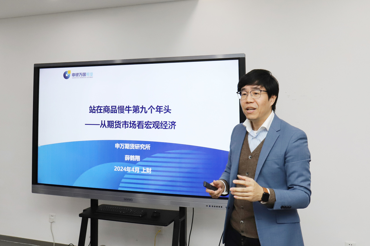 薛鹤翔主旨演讲主题为《站在商品慢牛第九个年头——从期货市场看宏观经济》,他立足于商品期货市场,从海外经济形势、国内经济形势、大类资产价格走势、商品总量与结构等方面分析一季度宏观经济形势发展。国际层面,由于美国通货膨胀依旧偏高,市场对美联储降息预期减弱。后疫情时代,一方面,美国人均GDP提高,与其他发达经济体差距扩大,主要基于美元相对强势、美国人均实际产出水平较高等因素。另一方面,美国国内财富差距不断扩大,居民超额储蓄耗尽,劳动参与率和失业率有一定程度上升。国内层面,地产行业与宏观经济之间逻辑发生转变。2018年之前,地产驱动宏观,放松地产作为逆周期调节的重要手段。2018年之后,高质量发展逻辑下,宏观决定地产,制造业等产业改善带来宏观经济改善,从而改善居民收入和收入预期,从而对地产景气改善起到正面作用。中国经济结构持续调整和优化。期货市场上,与地产行业紧密相关的螺纹钢价格走弱,而铜、铝等有色金属上涨反应了以新能源、新能源汽车为代表的新兴产业快速发展,这些品种的下游需求与地产关联性较低。总体上,中国一季度5.3%的GDP增速符合预期,未来政策或可适度关注名义GDP增速和通胀水平,实现总体价格水平温和上升有利于经济复苏和微观主体景气改善。大类资产价格层面,2023年底以来资产价格迅速对美联储降息预期作反应,美国高科技公司股价、黄金价格不断攀升,出现资产价格抢跑现象。大宗商品方面,2015年以来,大宗商品一直处于供给侧结构性慢牛格局中,能源体系结构持续调整,铜、铝等有色金属受到新能源、新能源汽车需求增长的支撑,大宗商品领域有一系列品种可用于跟踪和研判中国能源体系的重构。总之,大宗商品无论是在总量层面还是在结构层面均可为宏观经济分析、宏观和产业决策提供越来越多有益的信息和逻辑。