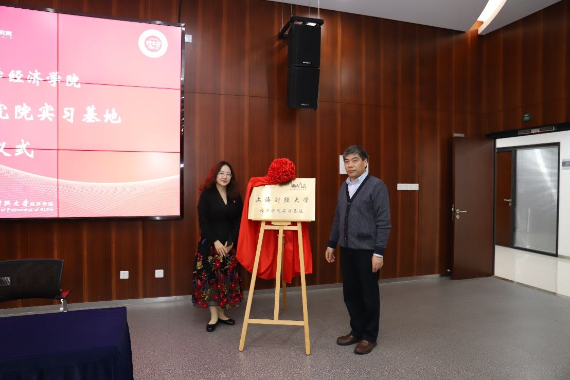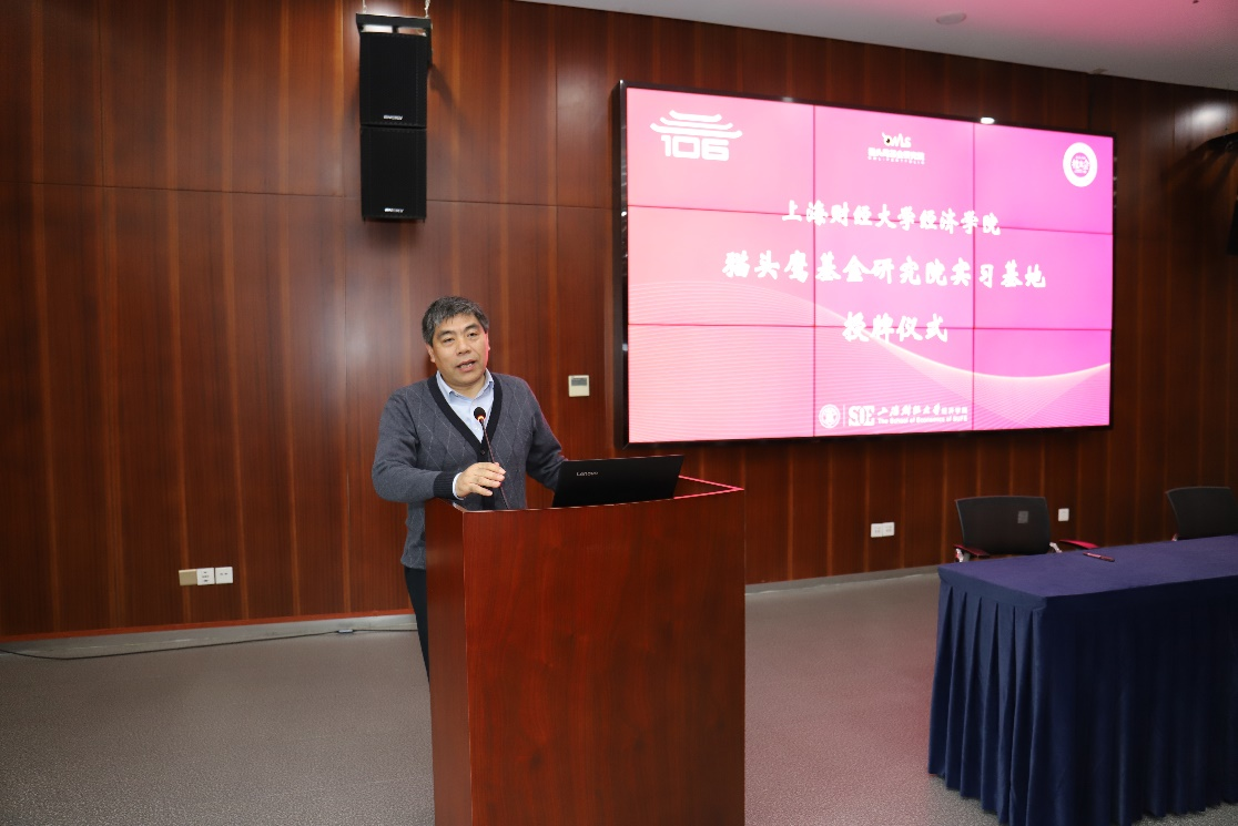 2024年4月23日下午,上海财经大学经济学院开展生涯规划基金方向专场暨猫头鹰基金研究院实习基地揭牌签约仪式。本次活动邀请了猫头鹰基金研究院董事长彭莉、研究总监张期翔、业务总监李佳,经济学院副院长冒佩华、办公室主任张迪及学院教务、校友团队和近70余位金融专硕同学参加。活动由研究生辅导员王佳瑞主持。