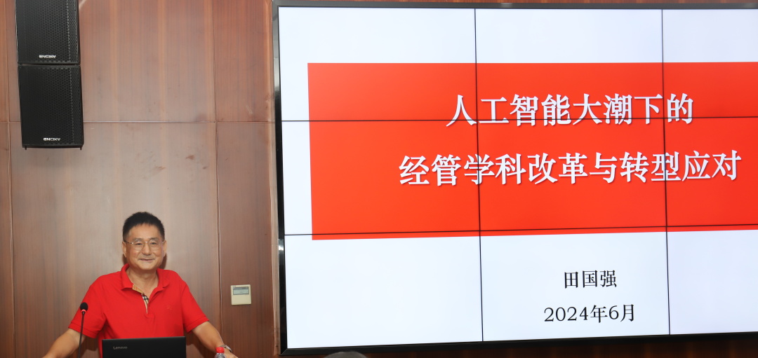 2024年6月25日上午高等研究院楼402报告厅,美国得州A&M大学经济学系Alfred F.Chalk讲席教授田国强教授从学科发展前沿角度,带来主题为“人工智能浪潮下经管学科改革与转型应对”的讲座,与我院师生共话经管学科的发展与变革。本次讲座由上财经院党委书记林立国教授主持。