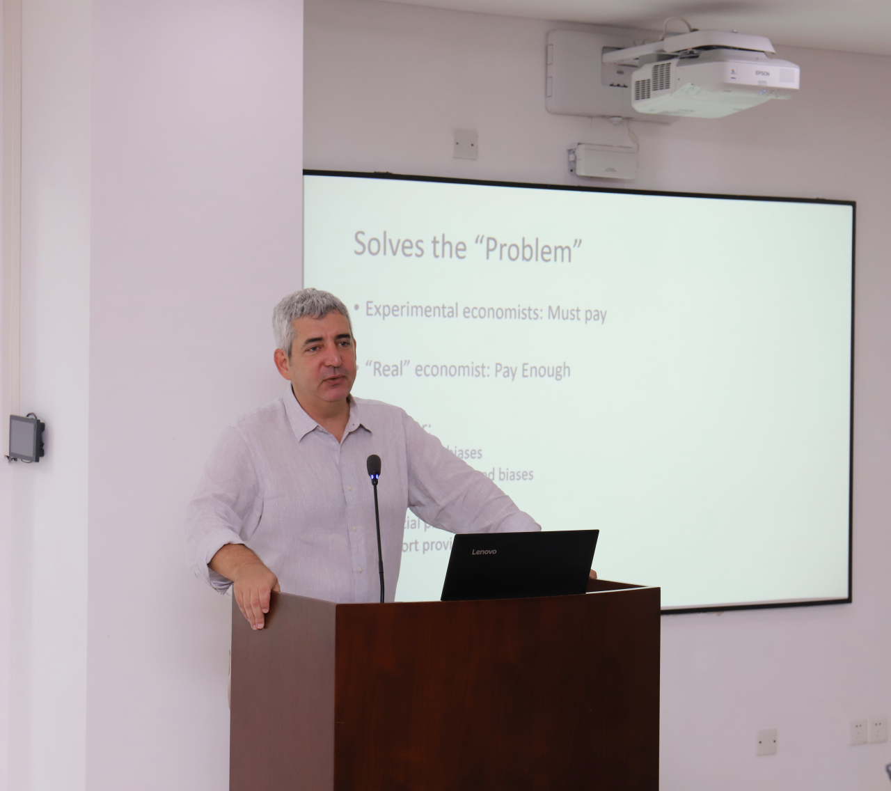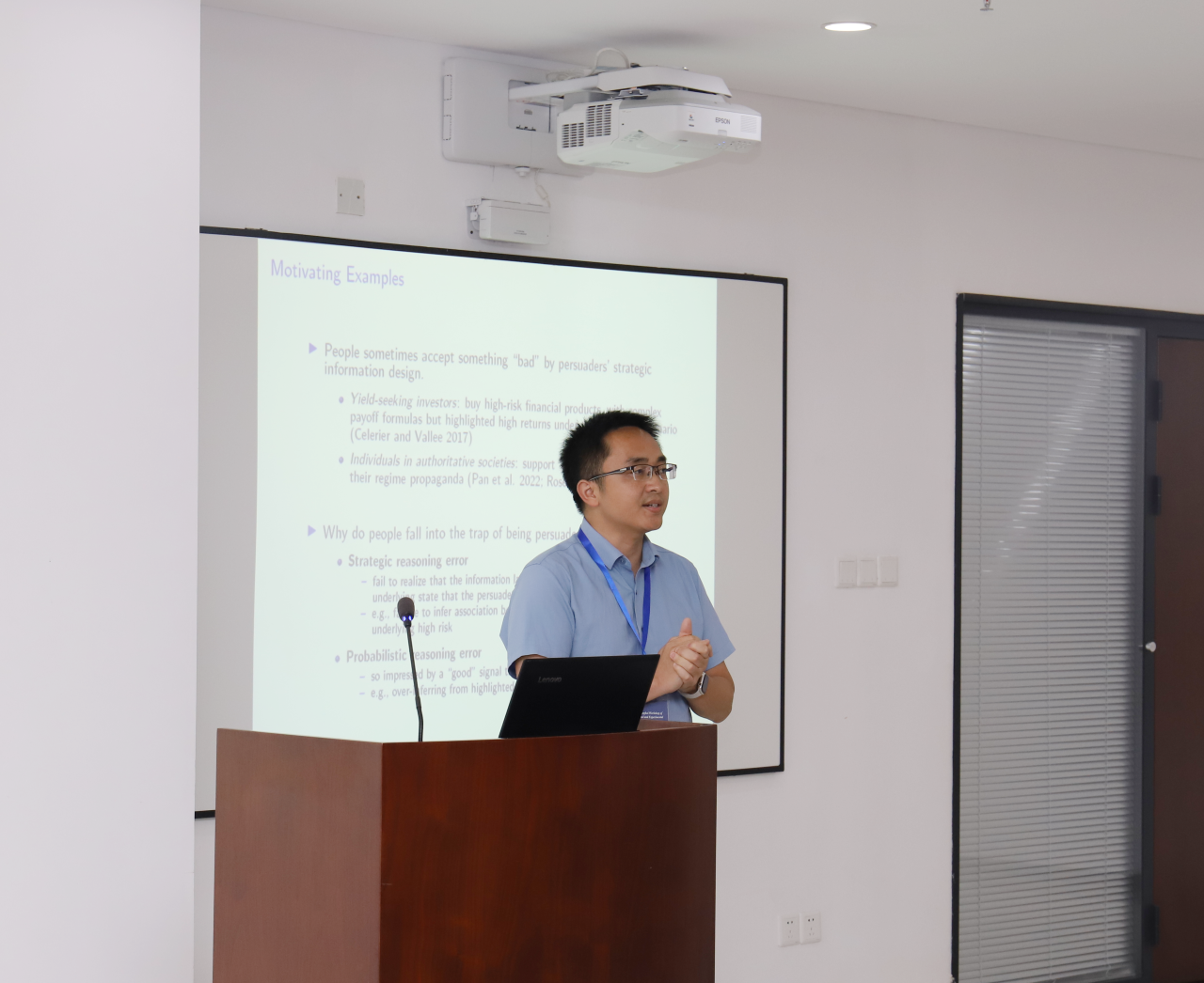 27日上午的会场由贺思民常任副教授主持。加利福尼亚大学圣迭戈分校Uri Gneezy教授以 “Stakes & Mistakes” 为主题展开主旨演讲。浙江大学陈发动长聘副教授、东南大学李昊讲师、上海财经大学杜宁华常任教授分别就“Process Data and Lies in Supply Chain Collaboration”“Correlation Neglect in College Admissions: An Experimental Study”“Spillover Effects of Lie Detection: An Experimental Investigation”主题展开专题报告。