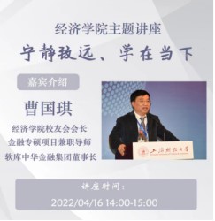 【合作发展】匡时论坛 | 曹国琪校友做客上财经院校友系列讲座第十七讲 2022-09-22 为更好地帮助同学们理性看待上海疫情,认识疫情形势的复杂多变,学会拥抱变化;倡导同学们阅读经典书籍,体验阅读带来的哲思与学理旨趣,2022年4月16日下午,上海财经大学经济学院校友会邀请校友会会长、金融专硕项目兼职导师、软库中华金融集团董事长曹国琪校友做客“...