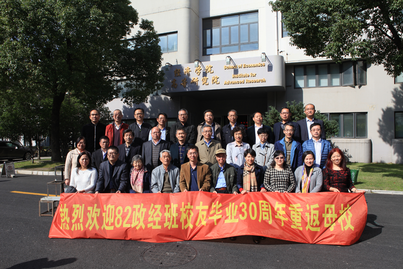 三十年沧桑情依旧 桃李共聚同窗情 2016-11-15 11月12日在喜迎我校99周年校庆之日,1982级政治经济学系校友从国外和祖国各地回到上海,齐聚经济学院,重温母校情怀。光阴荏苒,转眼间离开母校已有三十年,但大家对母校的眷恋却始终无法割舍。